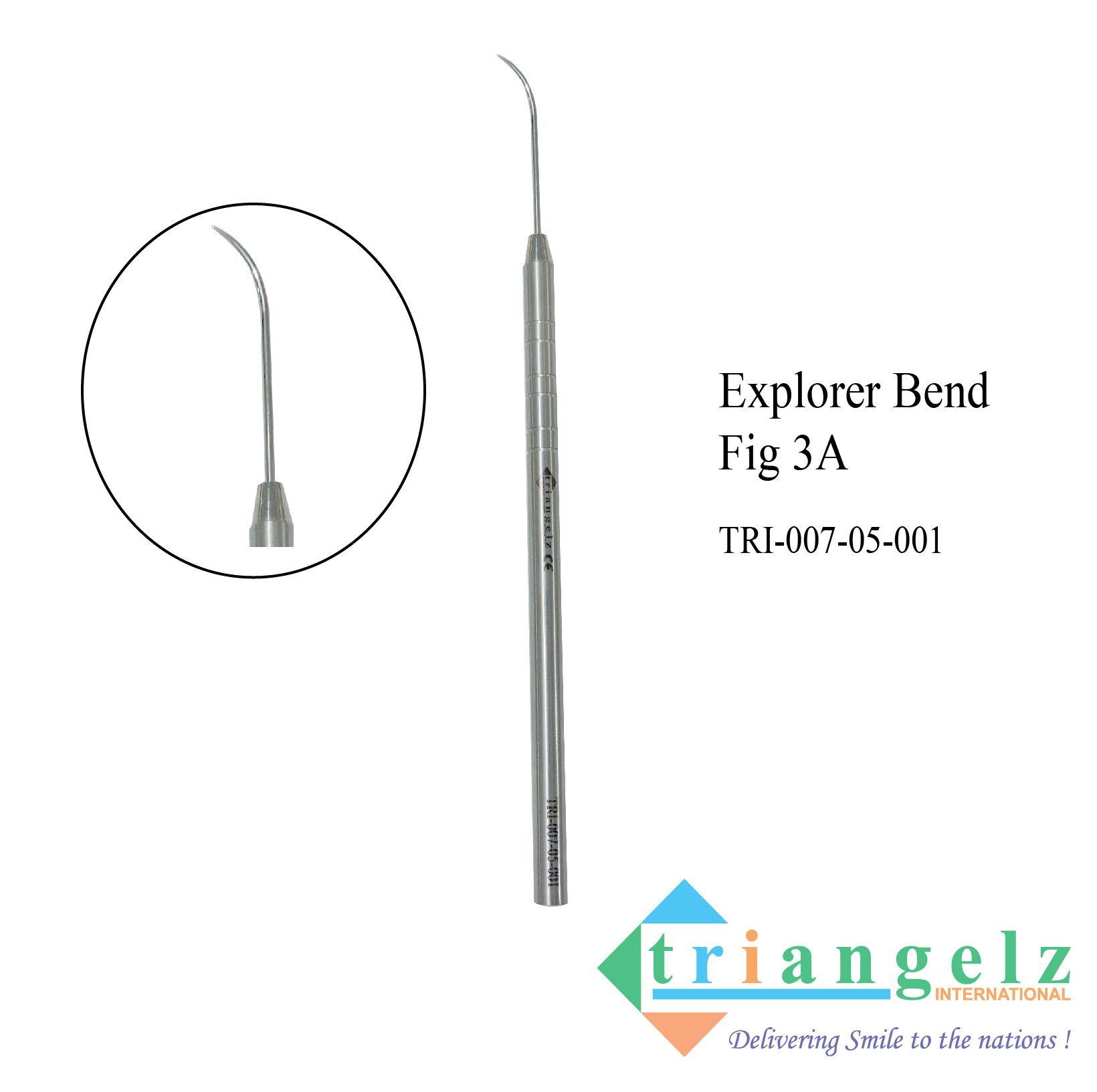 This “Explorer Bend Fig 3A” is a dental explorer designed for intricate examinations. Its finely curved, single-ended tip allows for superior tactile sensitivity, enabling dentists to detect tooth surface irregularities, calculus, and carious lesions with precision. The instrument features a well-balanced handle, providing optimal control and reducing hand fatigue during detailed diagnostic procedures.