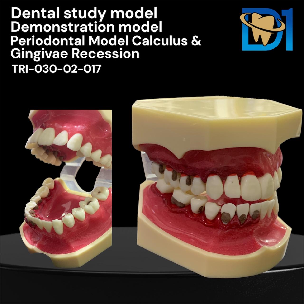 Periodontal model highlighting calculus buildup and gingival recession. Ideal for demonstrating periodontal diseases, dental hygiene practices, and treatment options. Perfect for student training and patient education.